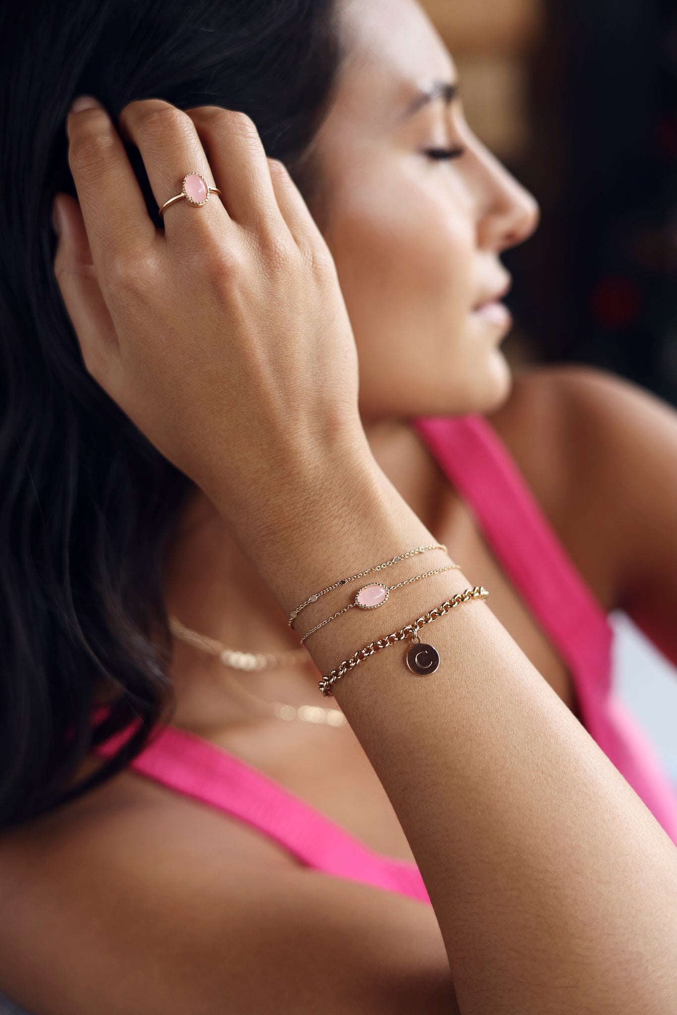 SELENE QUARTZ ROSE - Bague dorée ornée d'une pierre en quartz rose ovale