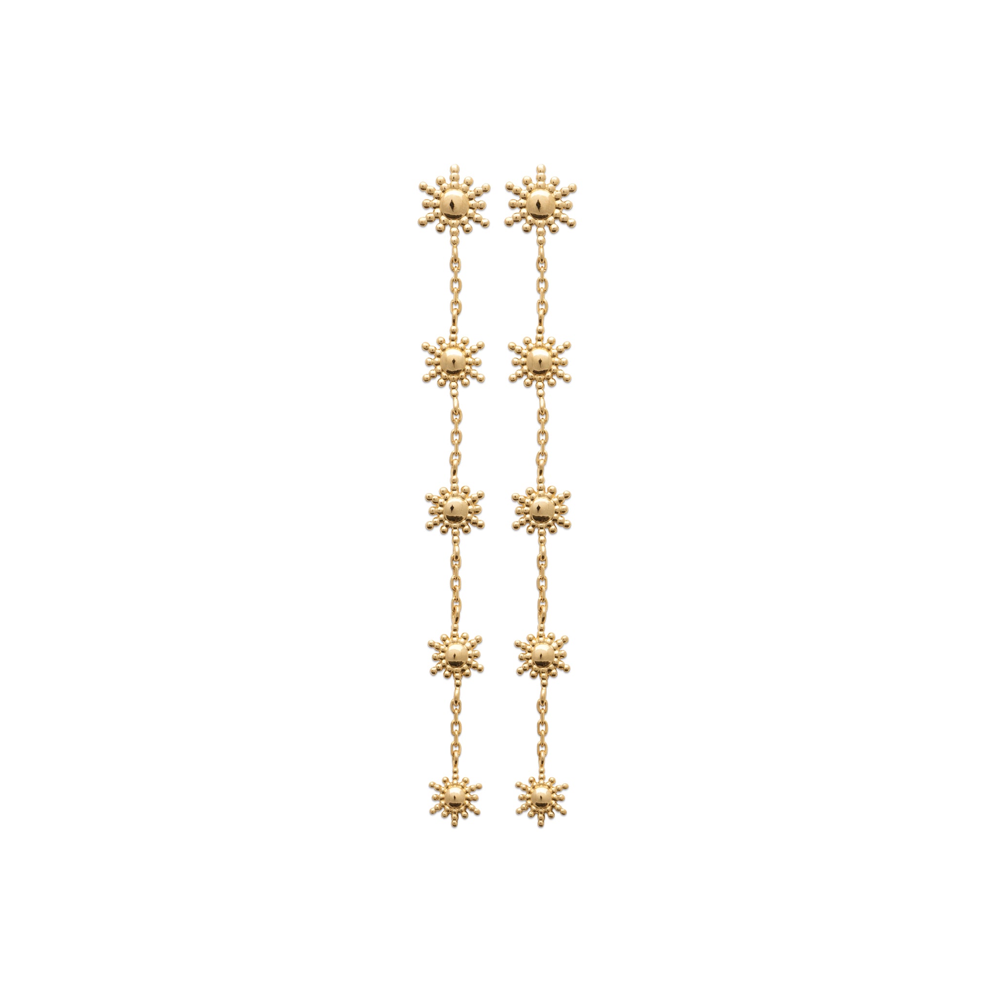 SOL - Boucles d'oreilles pendantes dorées avec des petits soleils