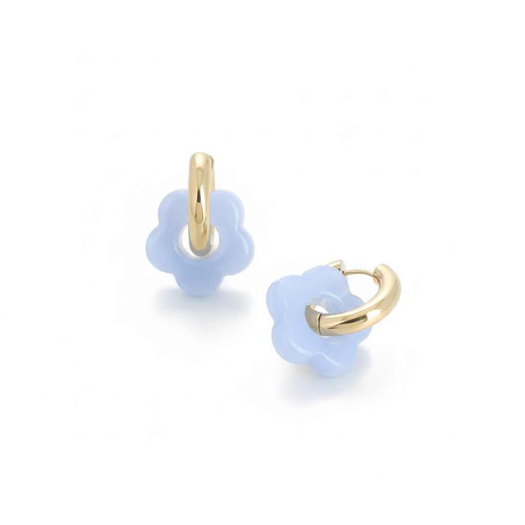 LOUNA BLEU CIEL - Mini créoles dorées fleurs colorées