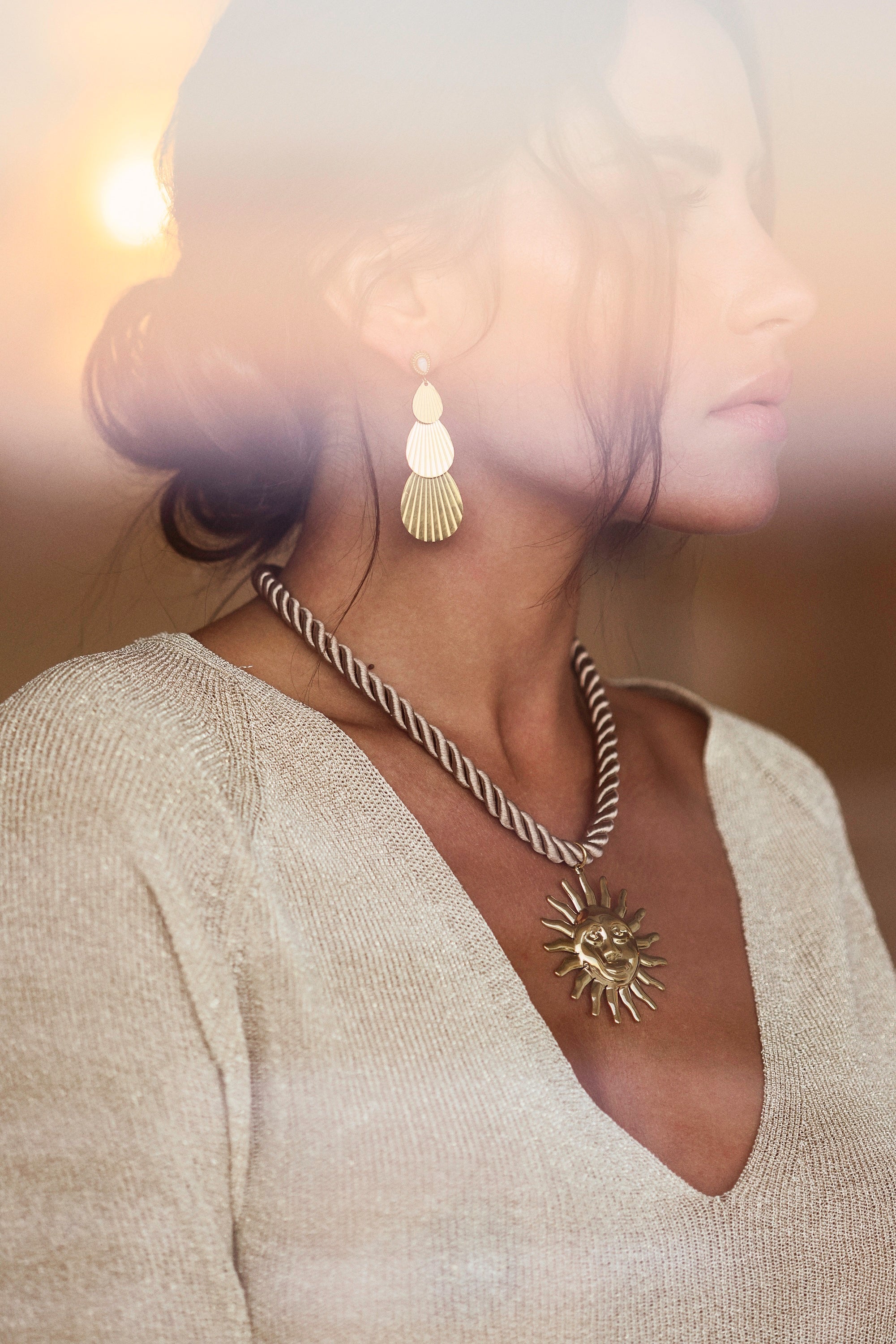 Un jeu de formes délicates et dorées, qui dansent au rythme de vos mouvements. Raffinées, légères, et résolument féminines.