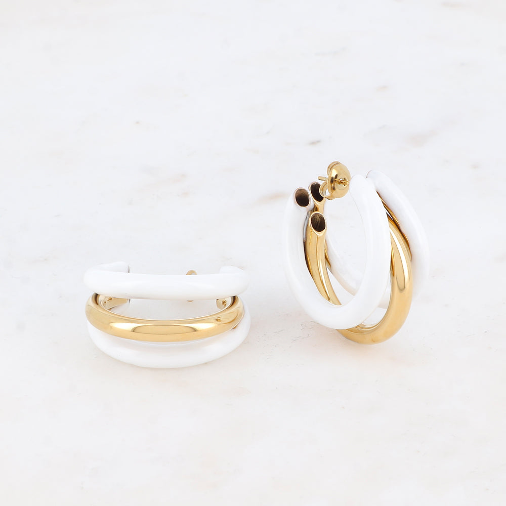 KATIANA L BLANC - Boucles d'oreilles dorées et blanches effet triple créoles