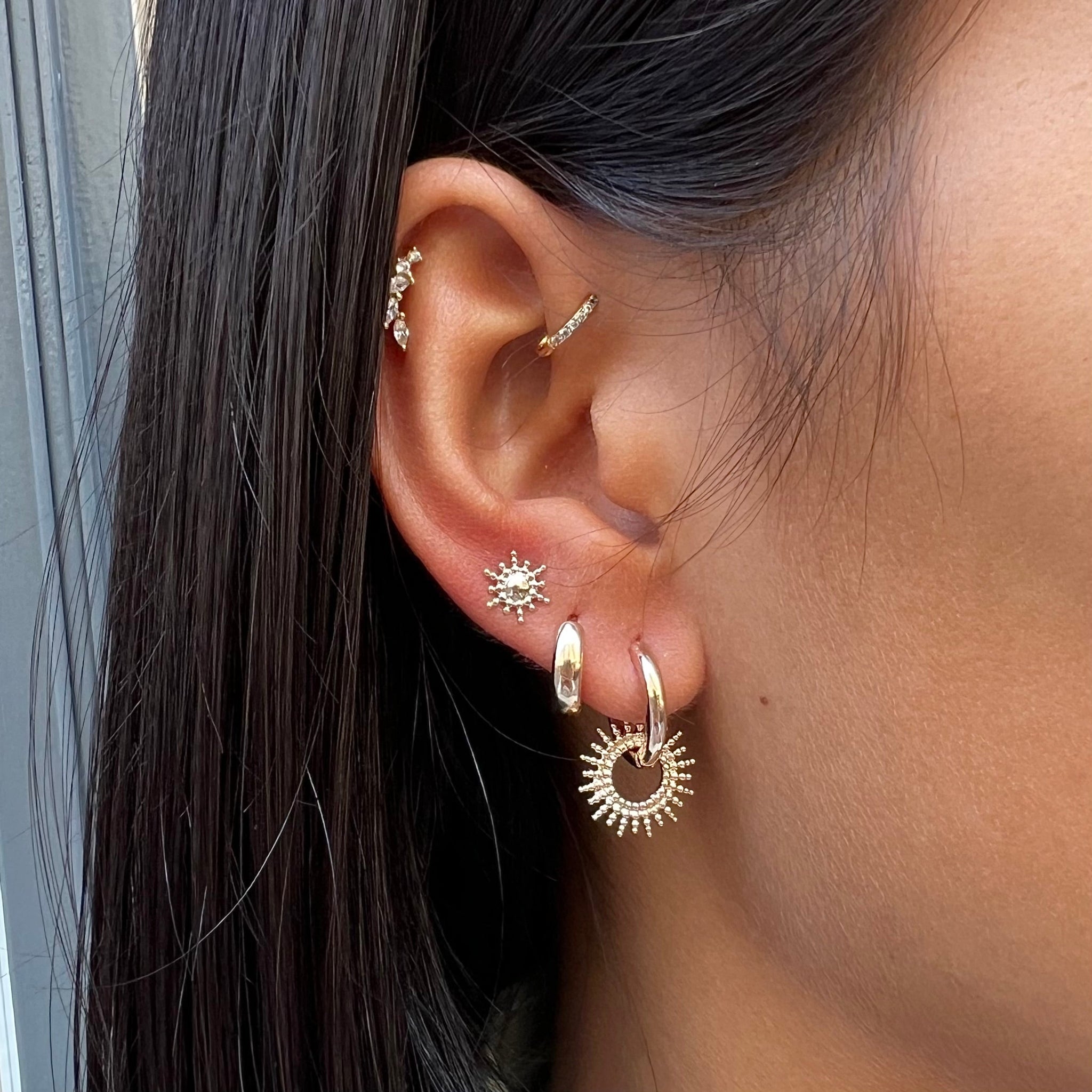 On craque pour ces mini créoles Adi ! Créoles 2 en 1, le soleil est amovible, vous pouvez donc choisir de les porter soit avec le soleil soit sans, c’est vous qui choisissez !