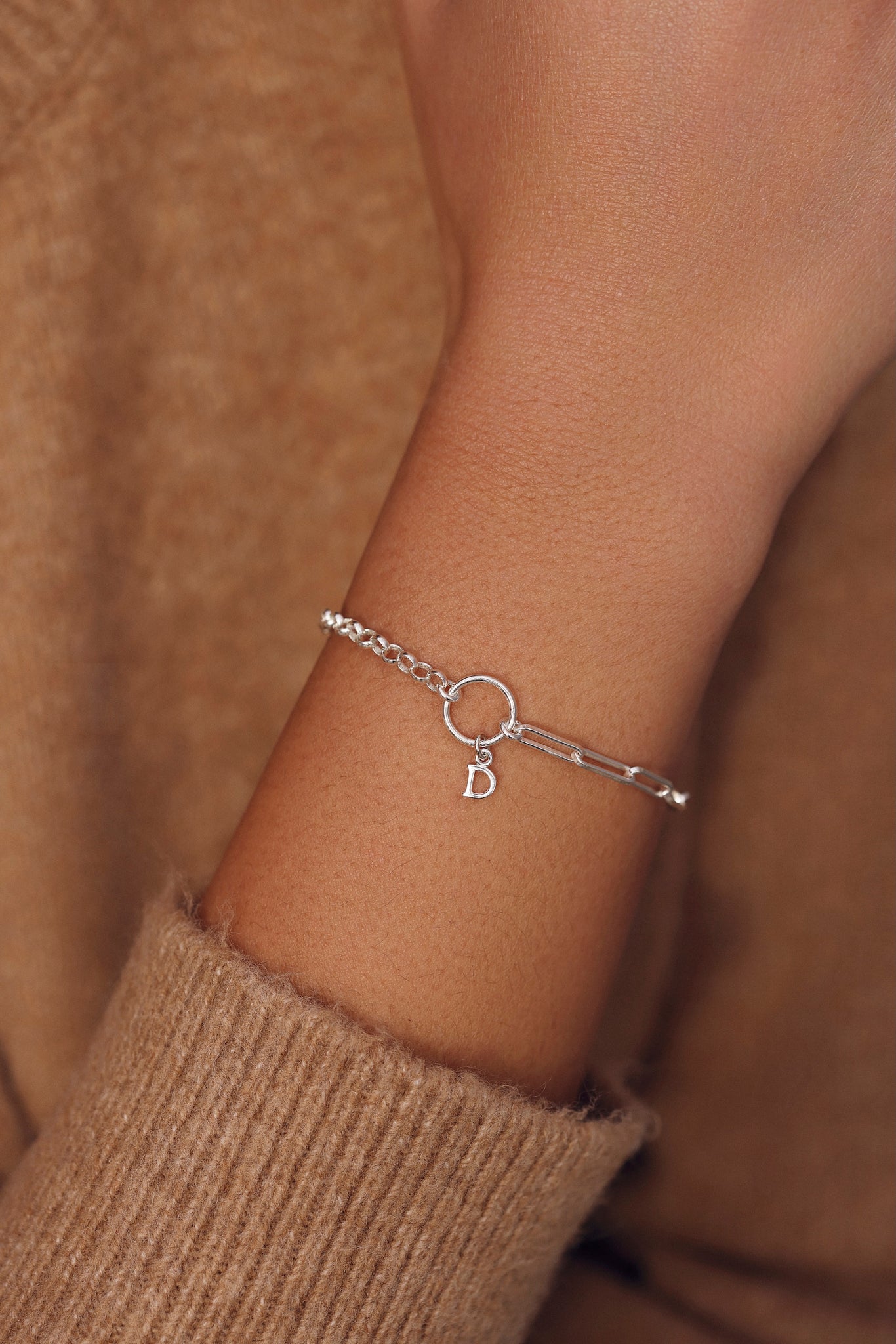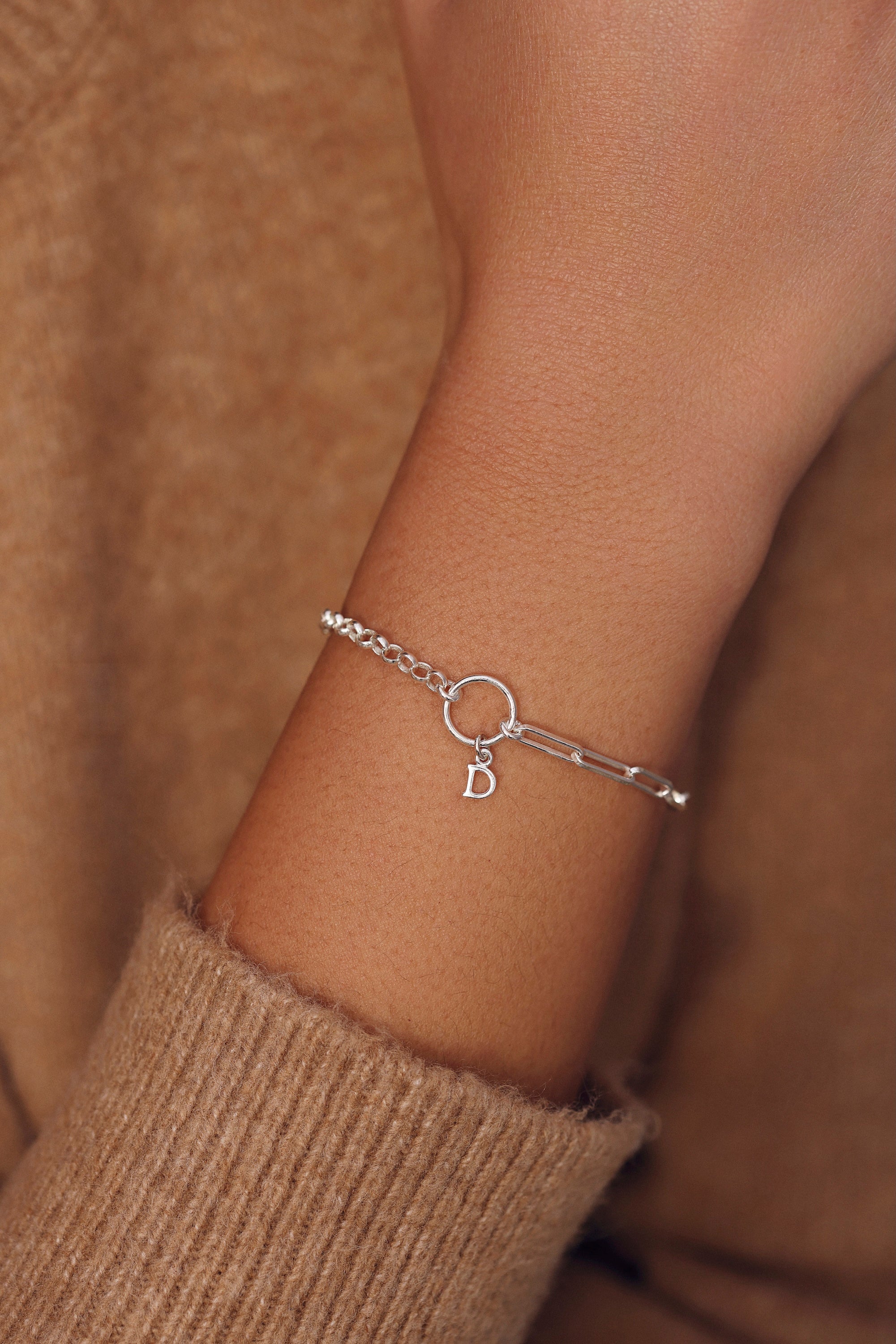 Bracelet personnalisable argent pour initiales et charms Selena