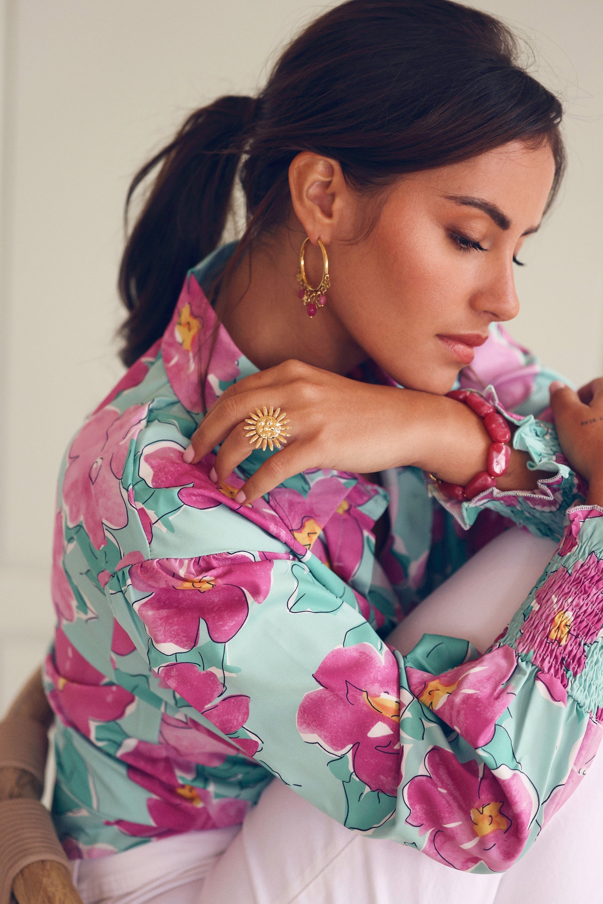 Un bijou audacieux et solaire, composé de grosses perles irrégulières couleur framboise. Il attire le regard, donne du caractère à n’importe quelle tenue, et sent bon les vacances.