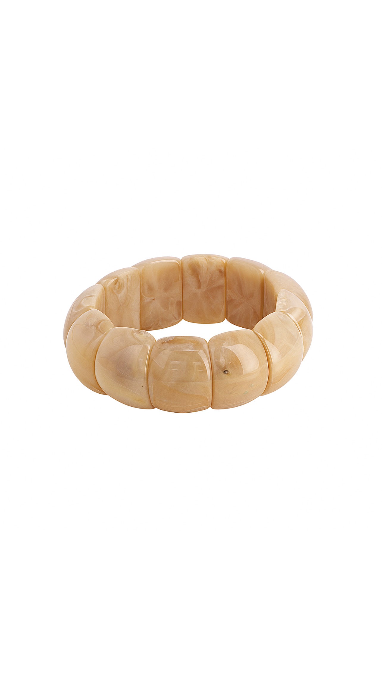 Maxi bracelet en acétate à l’allure rétro et tendance, le modèle Louane habille le poignet avec caractère. Sa teinte beige douce, marbrée, s’accorde à toutes les carnations et toutes les saisons.