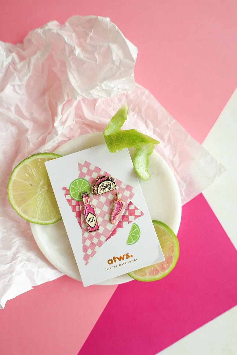 SPICY - Trio de pin's doré piment, tacos et sauce piquante