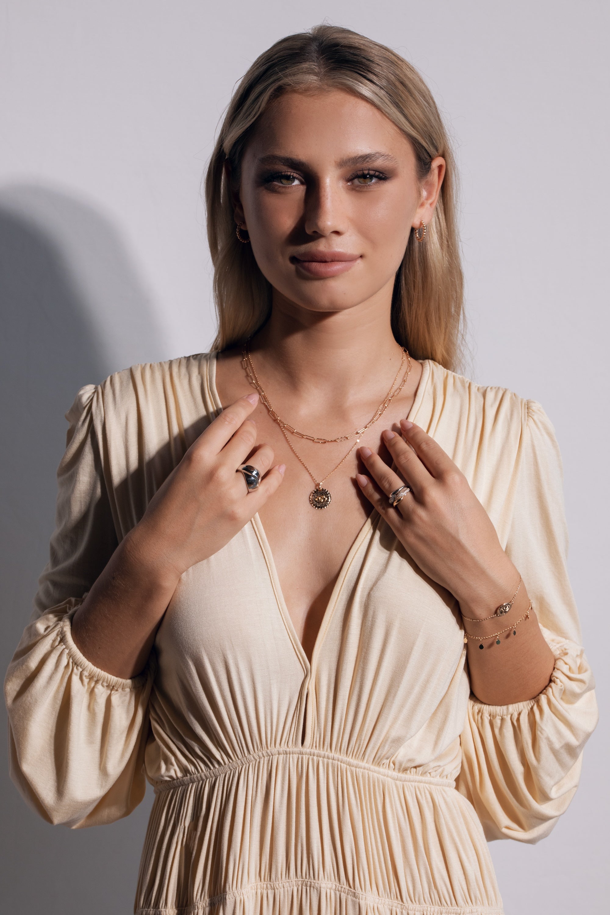 Abby diamant peut être porté seul pour un look minimaliste ou associé à d’autres colliers pour un effet superposé tendance.