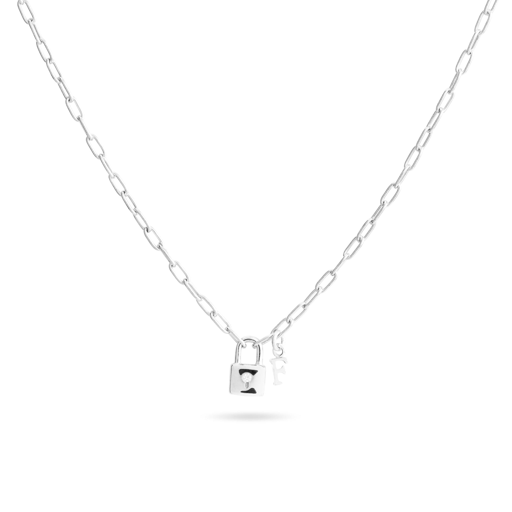 Collier argent personnalisable initiales et charms cadenas Castille