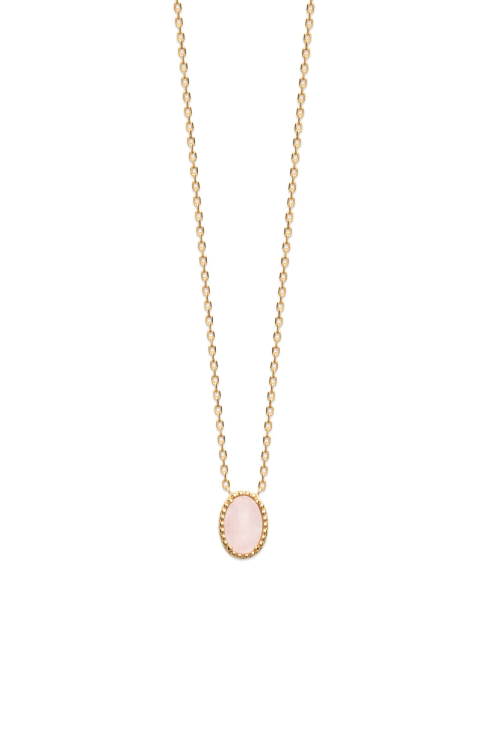 SELENE QUARTZ ROSE - Collier doré orné d'une pierre ovale en quartz rose