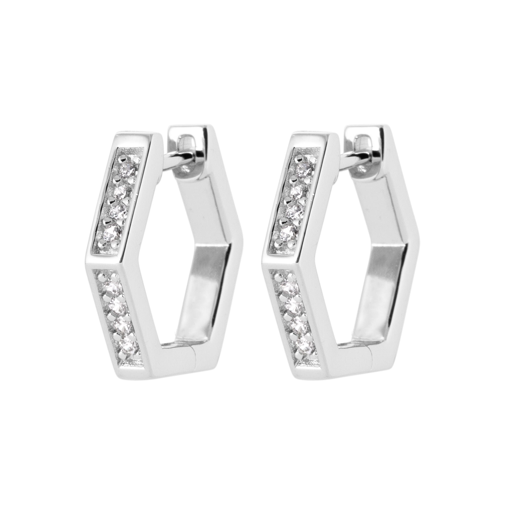 RAQUEL - Créoles en argent en forme d'hexagone serti de zircons