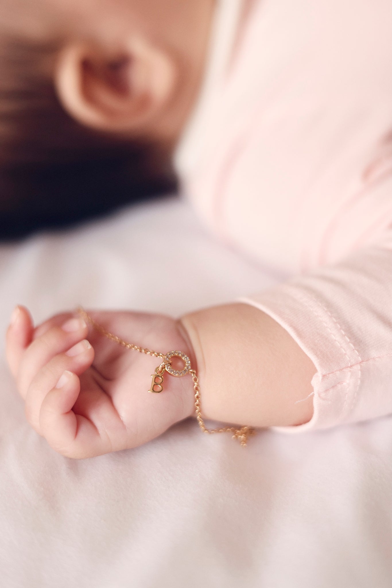BETTY - Bracelet personnalisable doré anneau serti de zircons pour lettres de l'alphabet et charms
