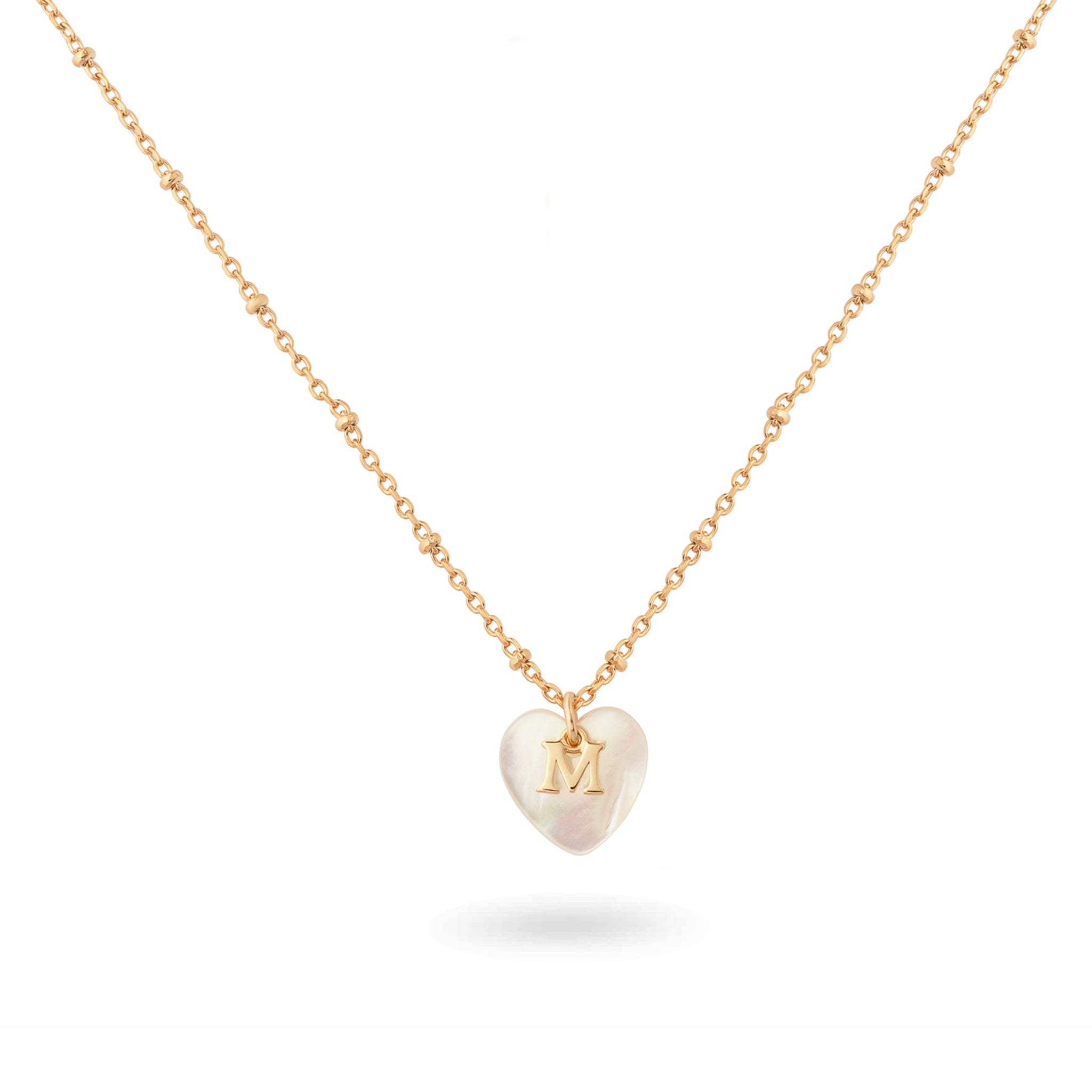 Pendentif coeur en nacre pour collier personnalisable doré initiale et charm