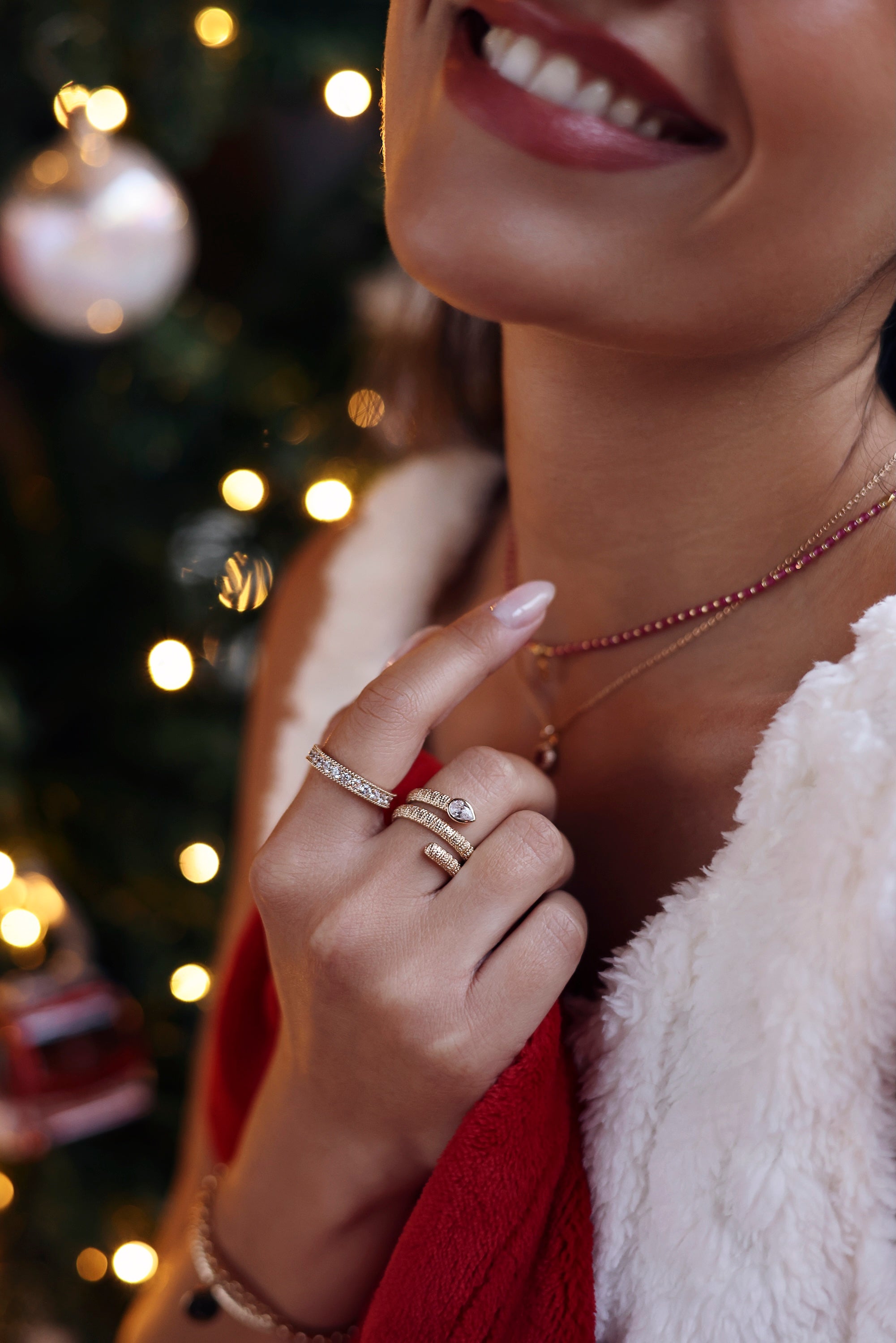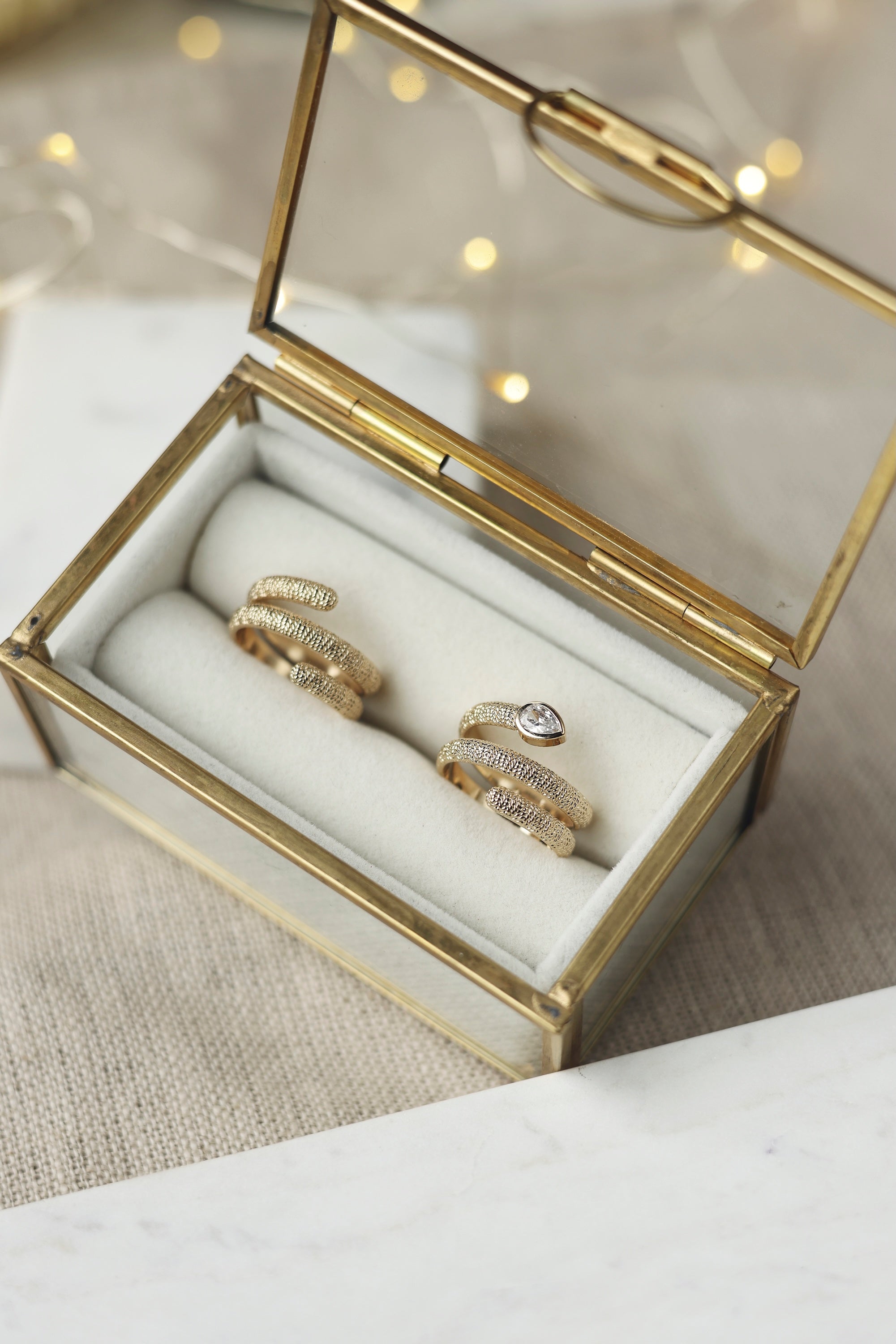 ABI ZIRCON - Bague dorée en spirale texturée ornée d'un zircon