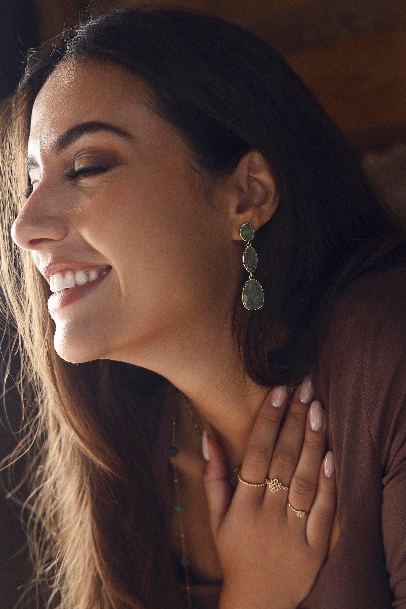 ALISSANDRA QUARTZ FRAISE VERT - Boucles d'oreilles pendantes dorées pierre naturelle