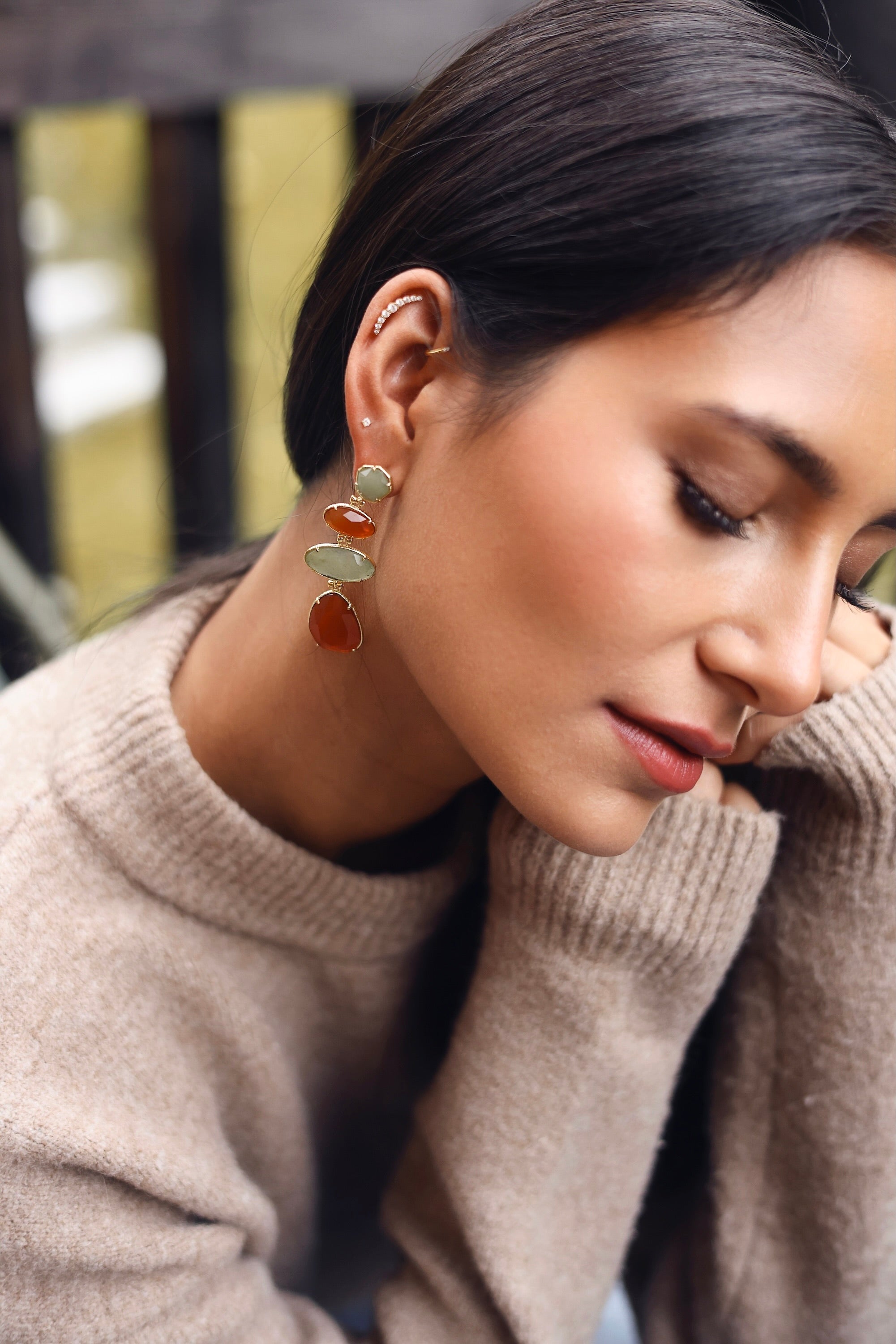 DELFINA - Boucles d'oreilles pendantes dorées ornées de pierres naturelles