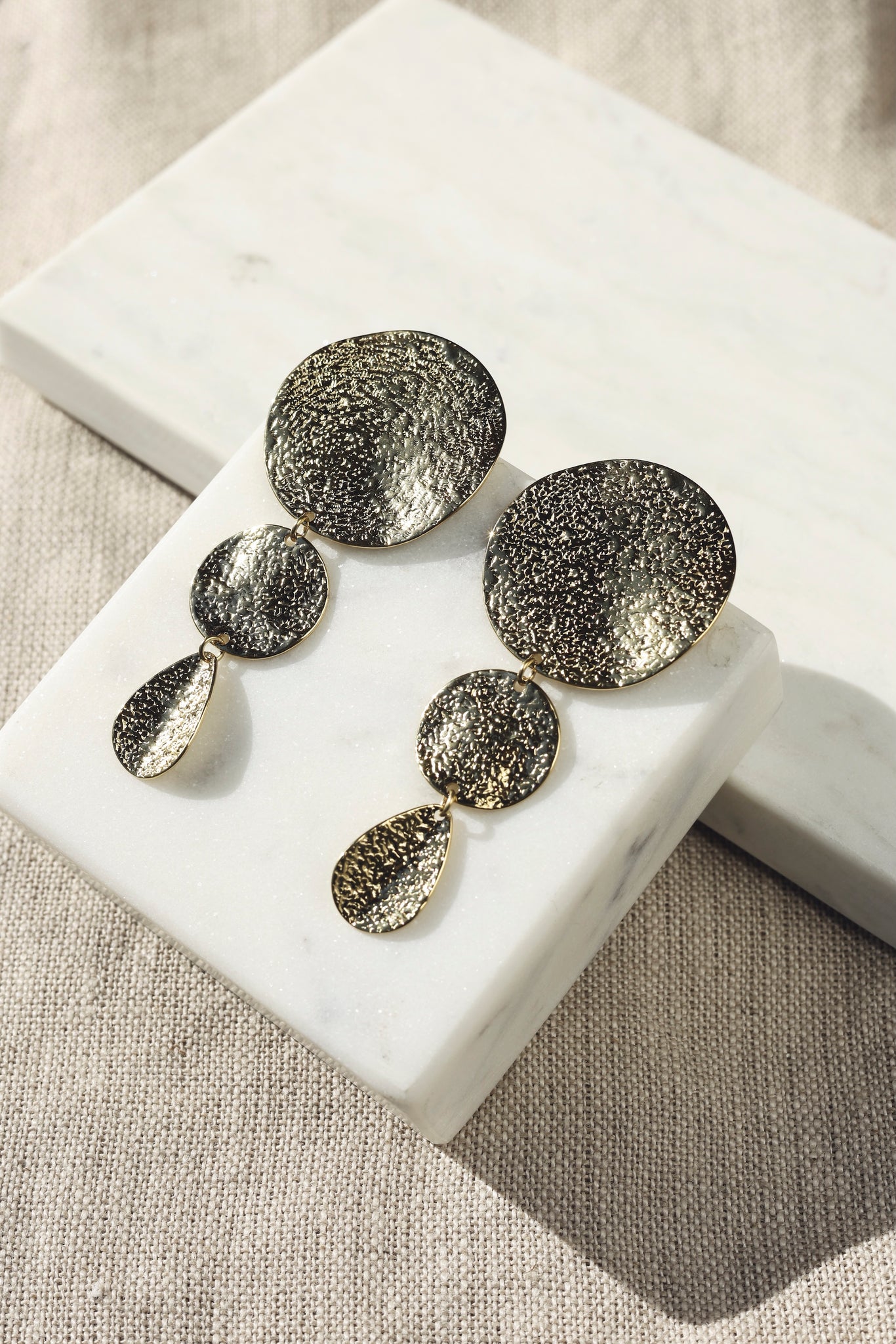 ELLY - Boucles d'oreilles pendantes dorées martelées