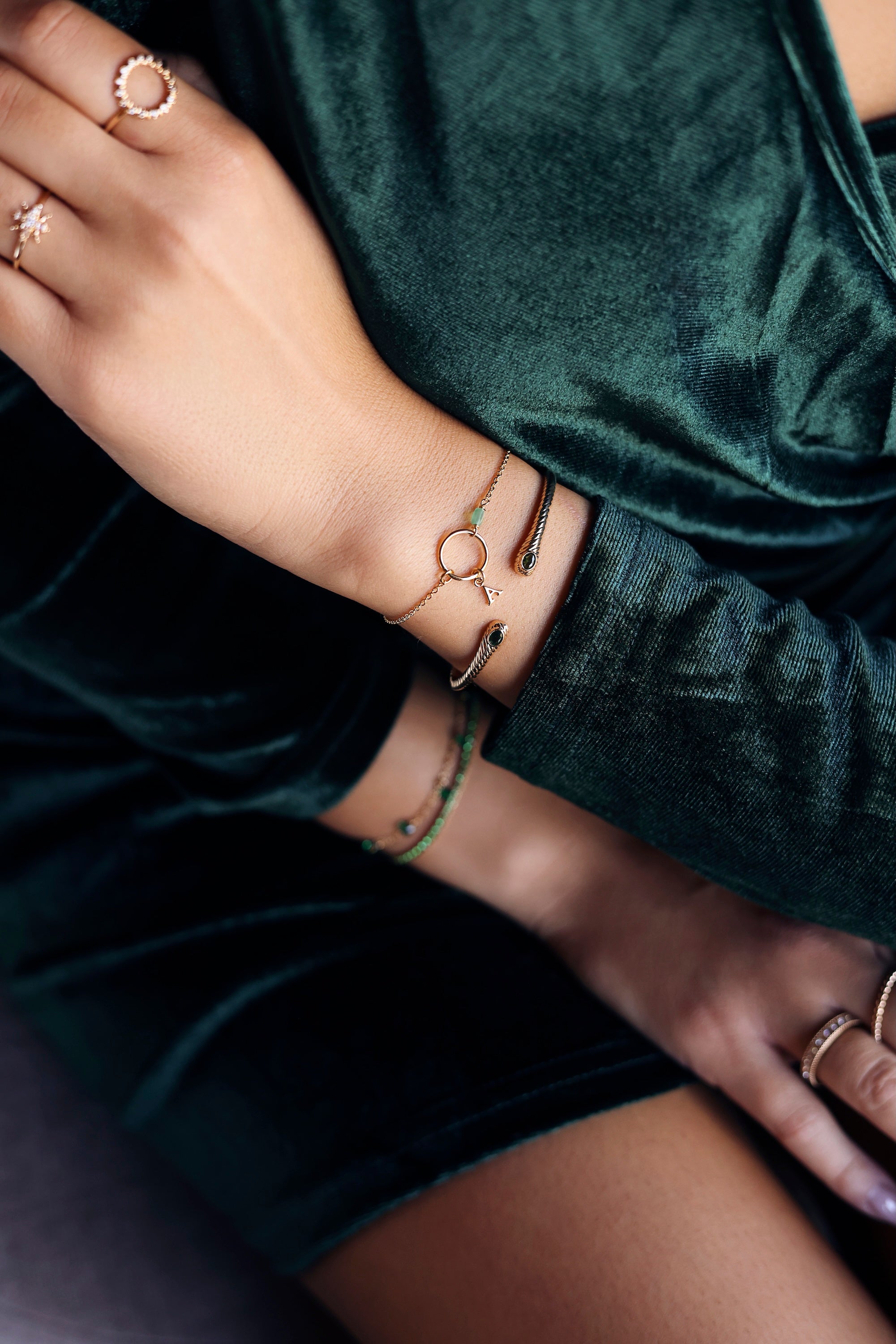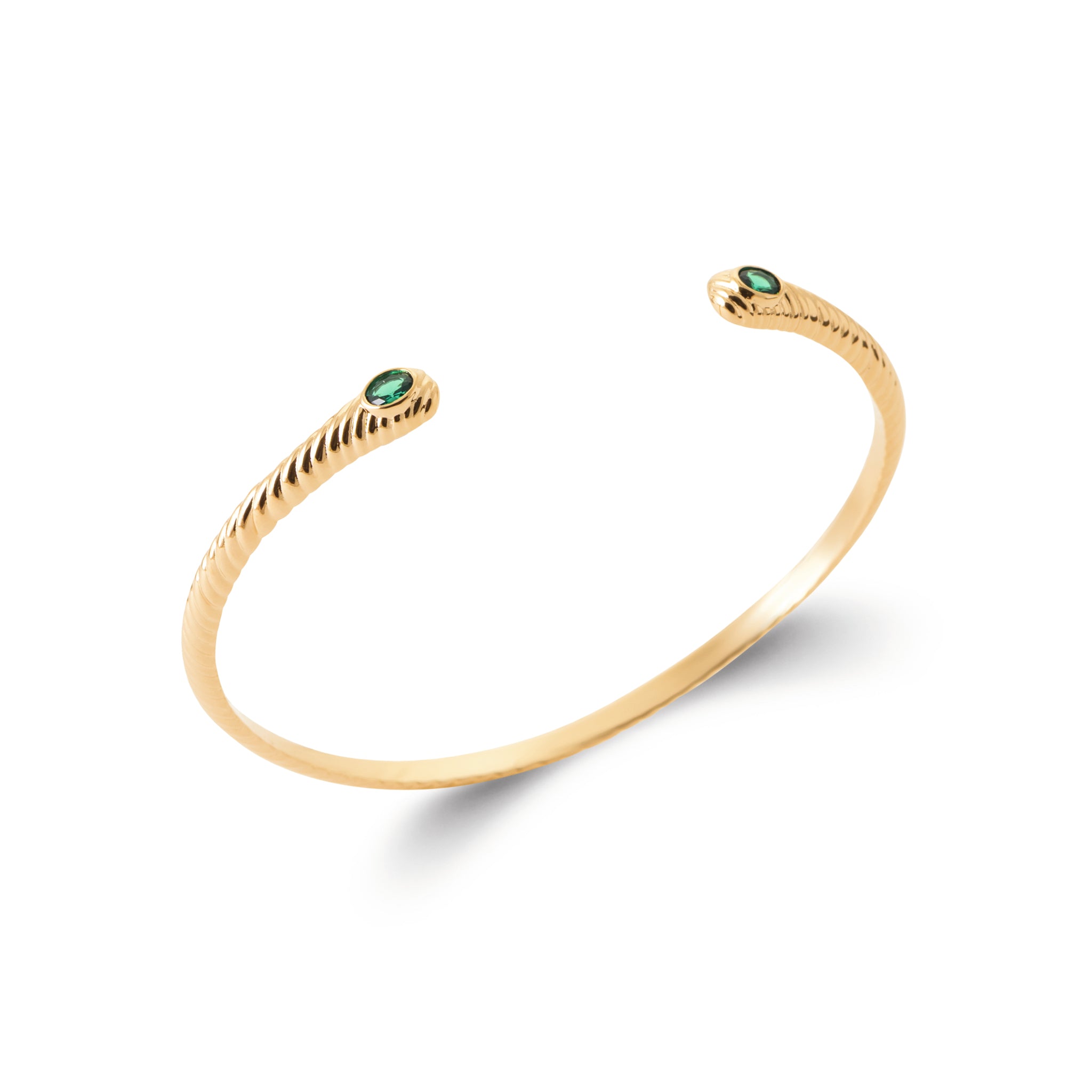 AMBRE - Jonc doré torsadé orné de zircons verts