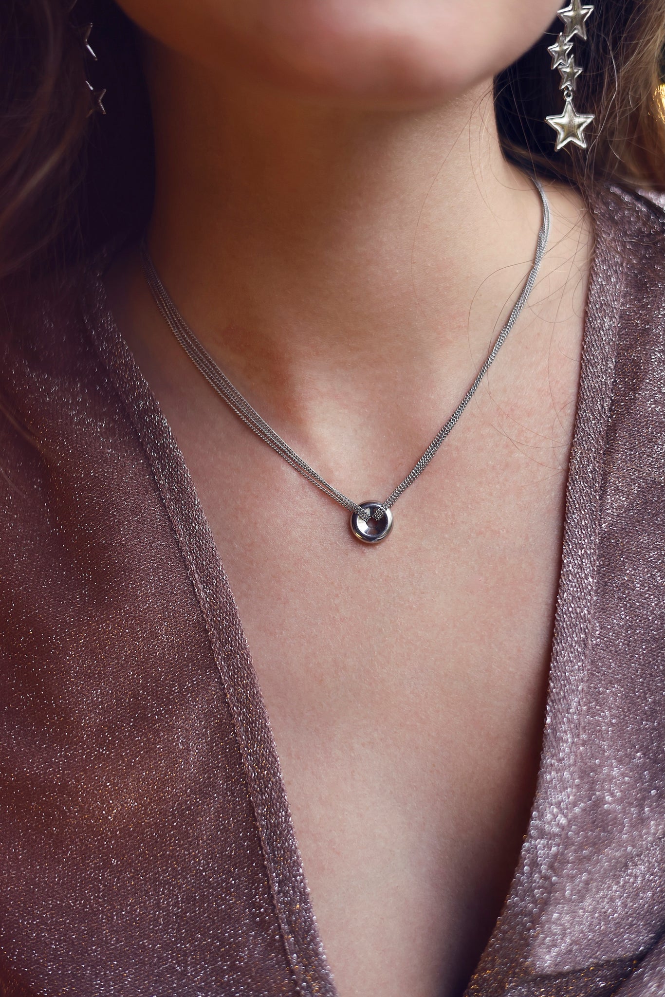 MILLIE - Collier argenté multi-chaînes avec pendentif rond