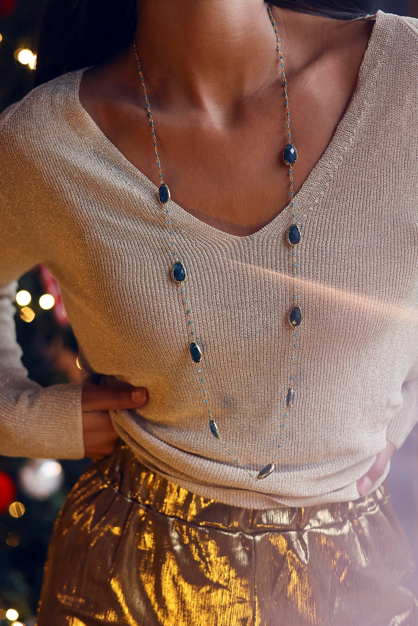 ESTELLE APATITE - Collier sautoir doré orné de pierres naturelles