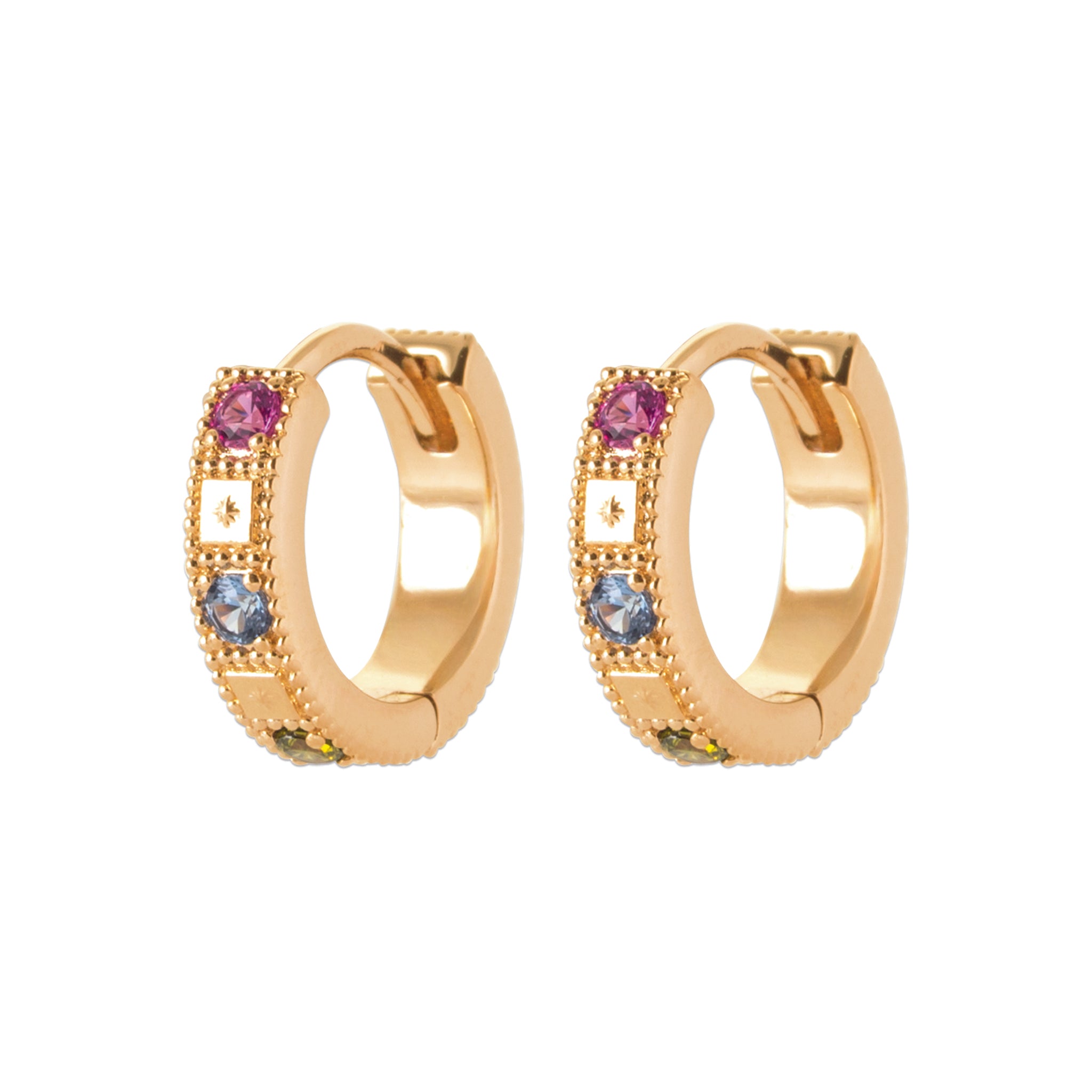 KELIANI - Créoles dorées ornées de zircons colorés pastels