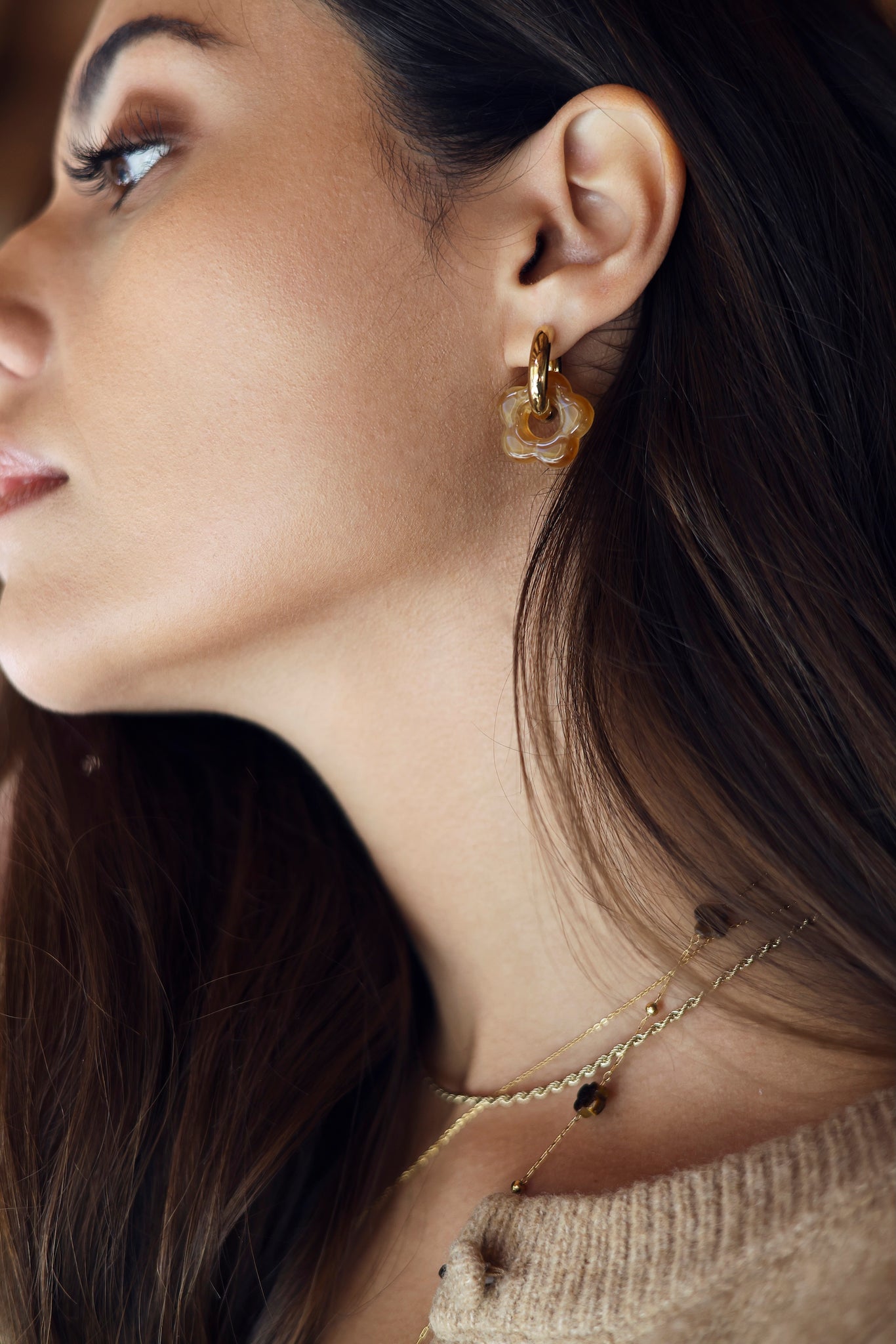 LOUNA SABLE - Mini créoles dorées fleurs colorées