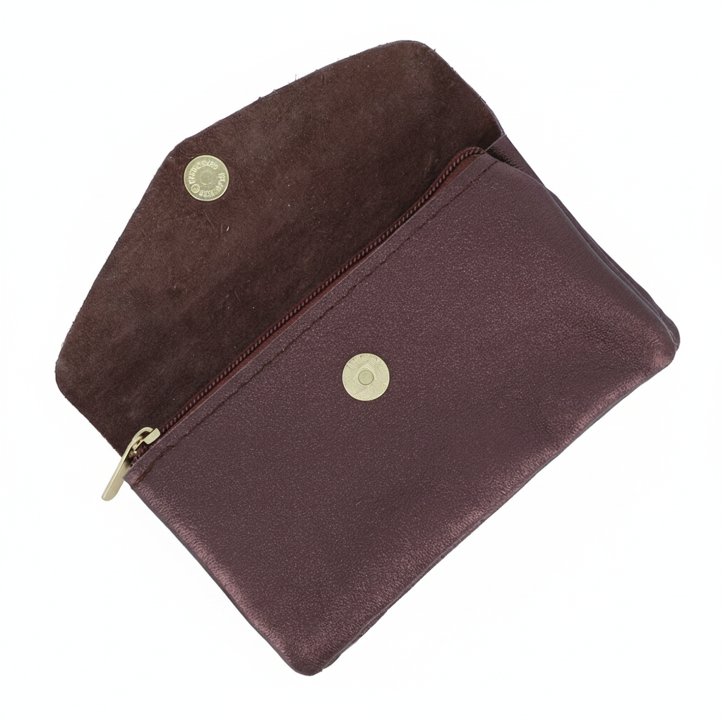 Pratique et élégant, ce porte-monnaie en cuir recyclé dans une magnifique teinte bourgogne offre l’espace parfait pour vos cartes, votre monnaie et quelques essentiels.