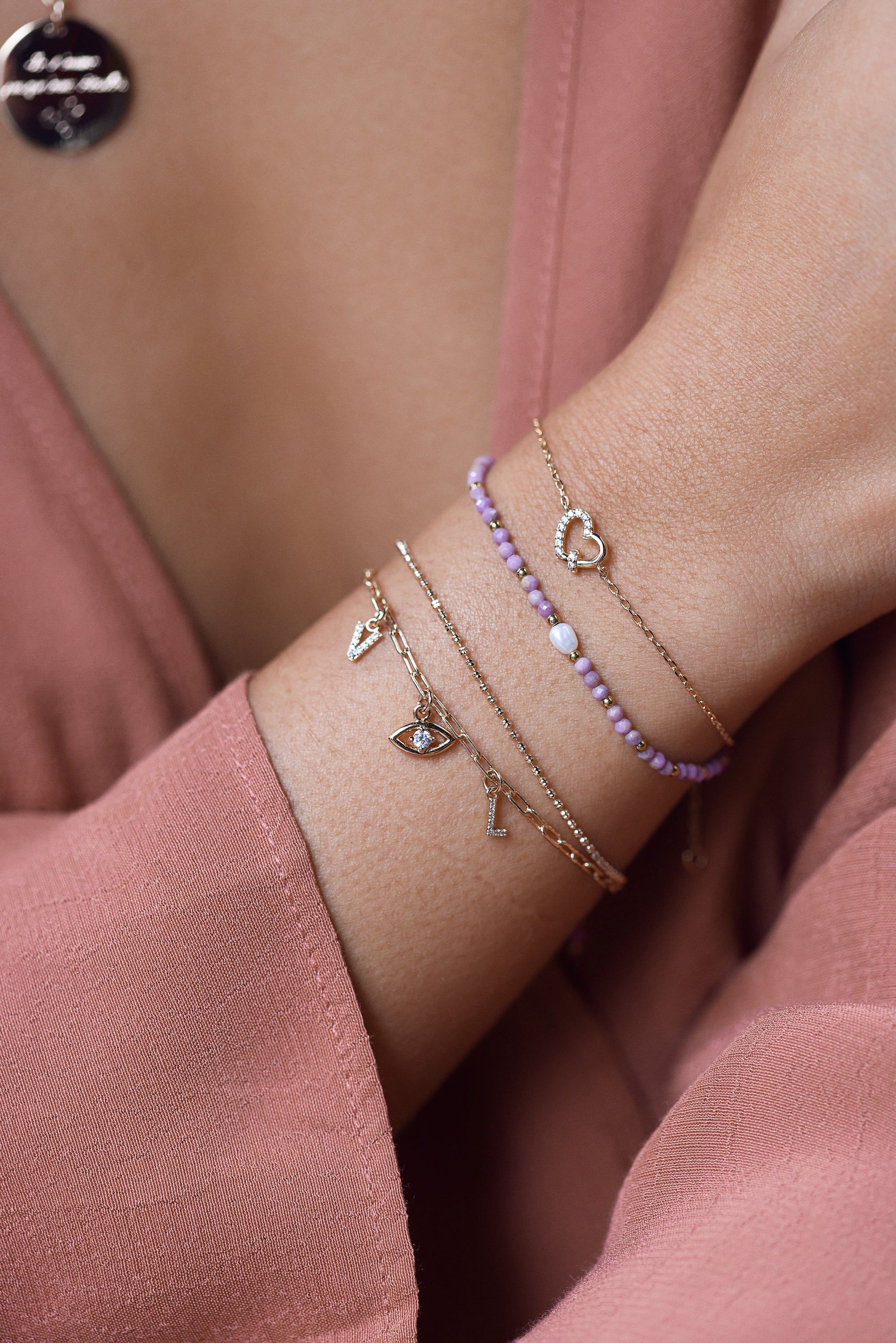 Glissez un ou plusieurs charms sur sa maille fine, et découvrez près du fermoir un charm cadenas délicatement dissimulé, symbole discret mais profondément significatif.
